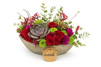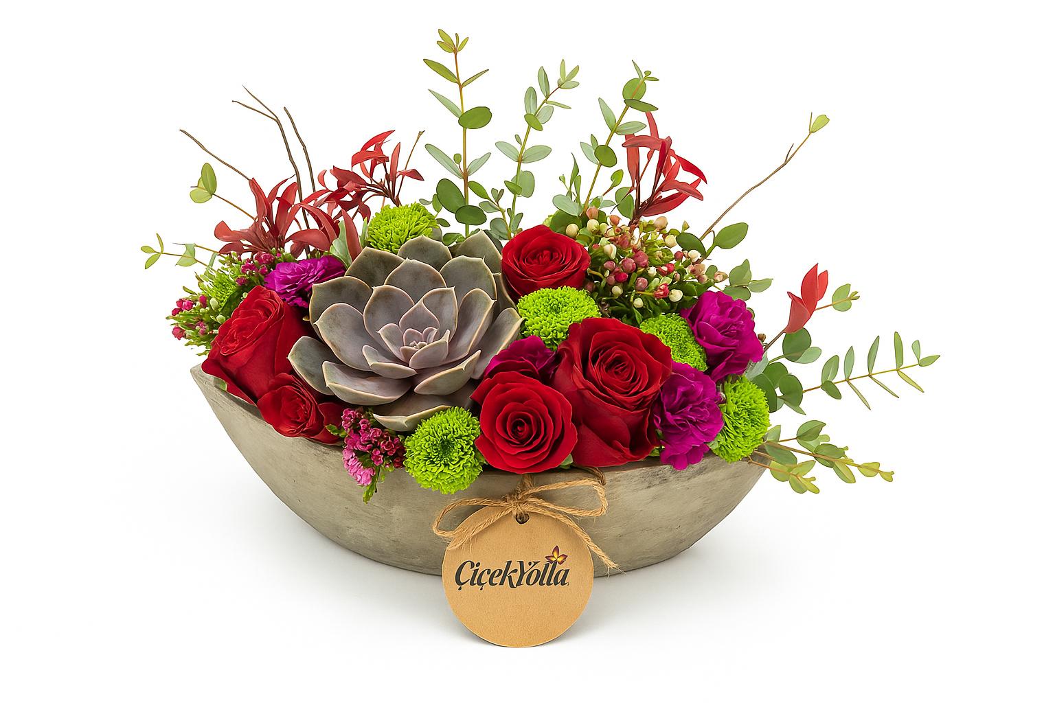 "Kırmızı güllerin romantik zarafeti, echeveria sukulentin doğal güzelliğiyle buluşuyor. Anni Kırmızı Güllü Echeveria Serisi, modern ve şık bir tasarımla sevdiklerinize özel bir hediye sunuyor. Şık seramik saksısı ve göz cihazı detaylarıyla bu aranjman, aşk ve özel anları ortadan kaldırmak için ideal bir seçimdir. Çiçek Yolla güvencesiyle hızlı teslimat avantajıyla sipariş verebilirsiniz."