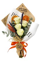 Adet: 5 adet beyaz gül, kuru lavanta, turuncu kuru başaklar, kuru portakal dilimleri, eucalyptus yaprakları