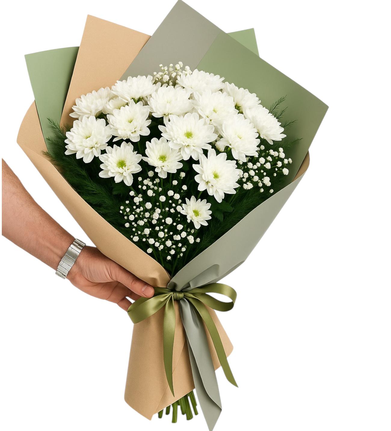 Doğallığı ve masumiyetiyle sevilen “Doğal Sadelik” buketi, beyaz papatyaların sadeliğini cipso çiçeklerinin zarif taneleriyle buluşturuyor. Yeşil ve kraft tonlardaki ambalajıyla doğaya gönderme yapan bu özel tasarım, zeytin yeşili saten kurdeleyle bağlanarak şıklıkla tamamlanıyor. Hem anlamlı hem de ekonomik bir jest yapmak isteyenler için ideal bir seçenektir.