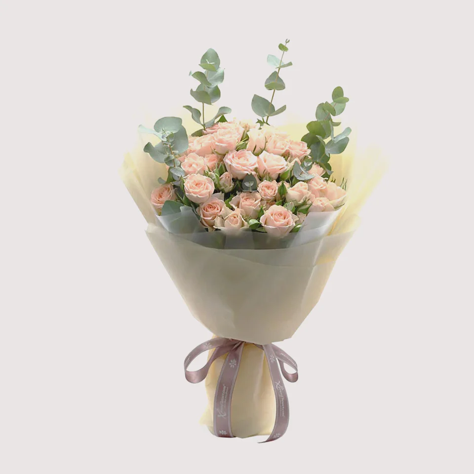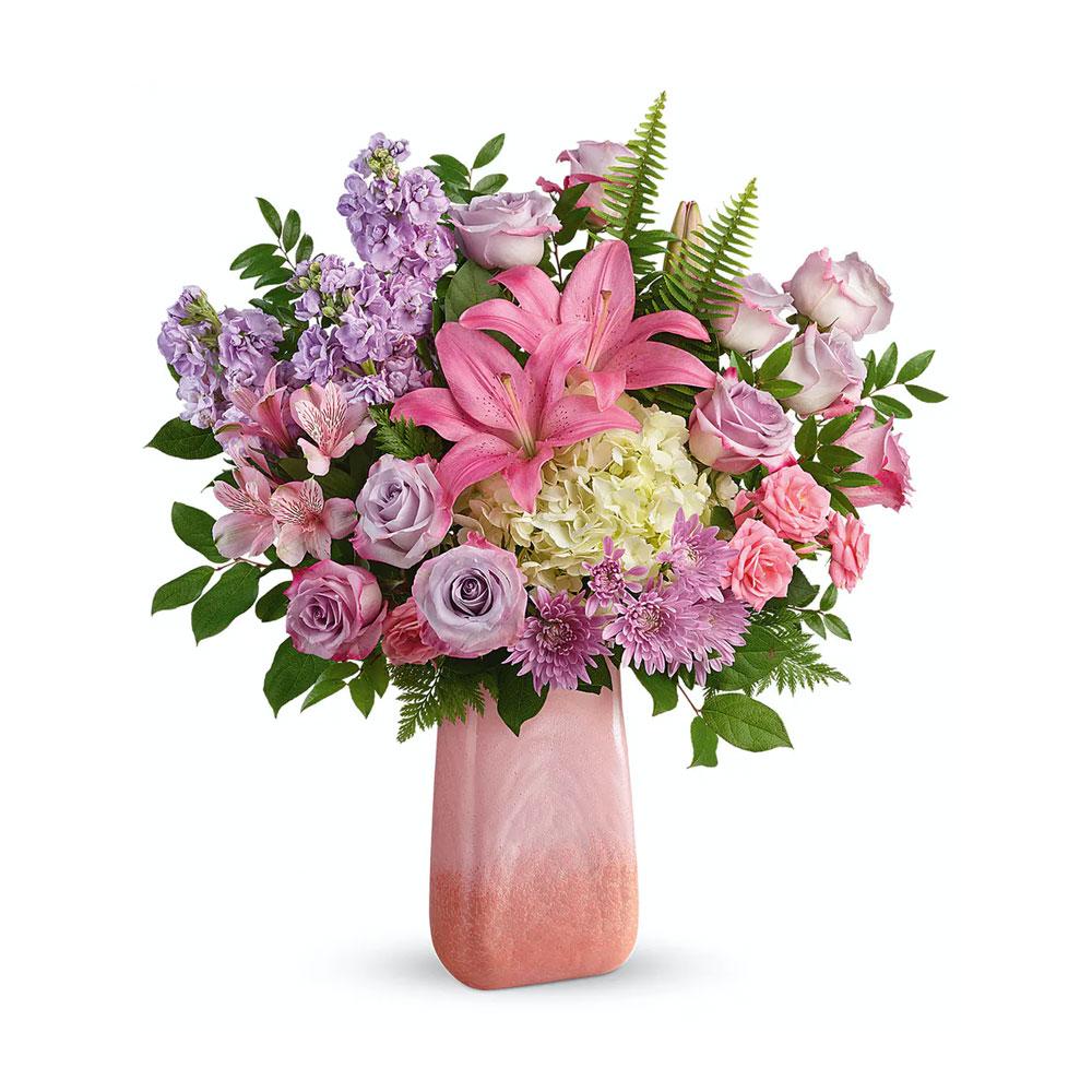 Pembe Silindir Kutuda Gül ve Lisyantus Aranjmanı