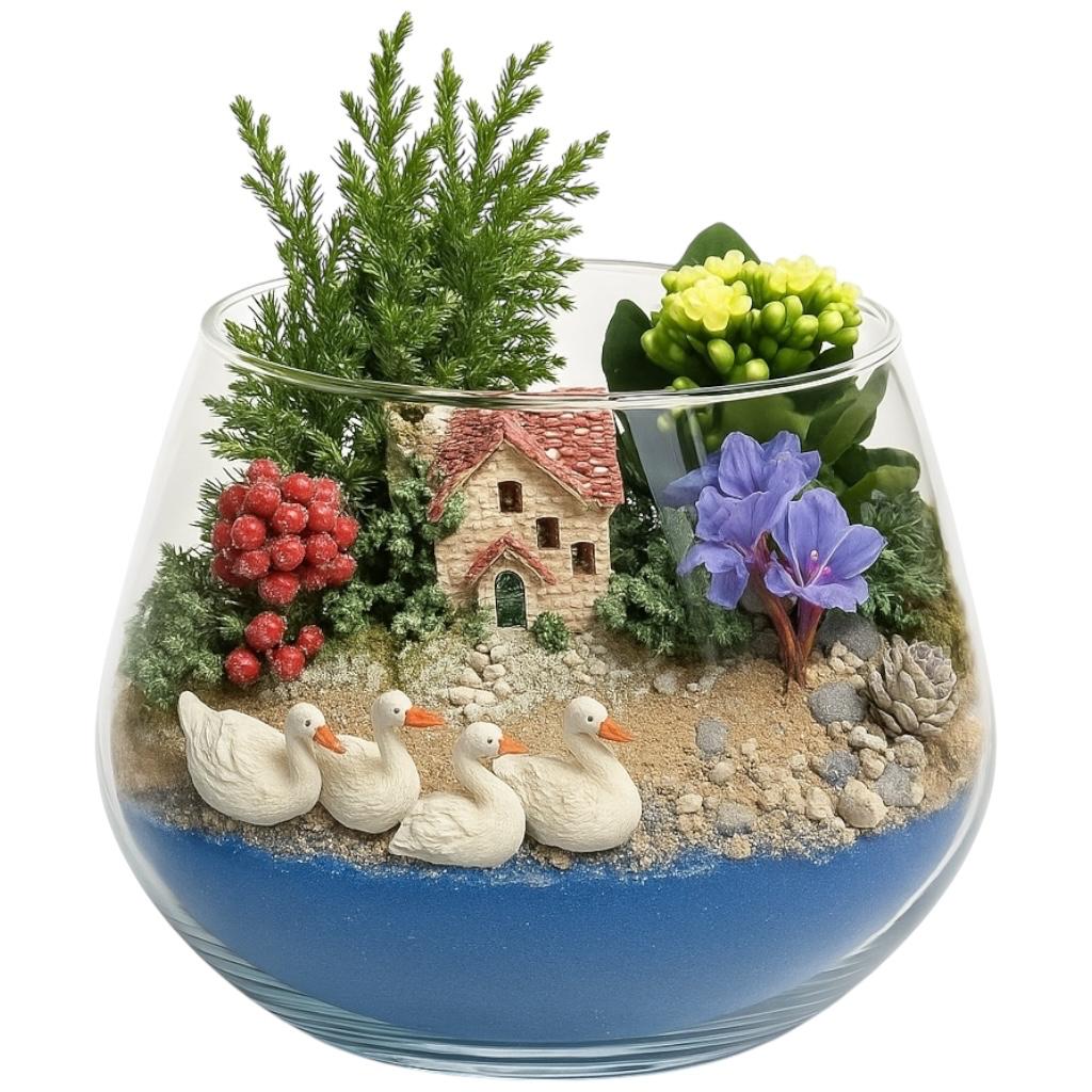 Hediye Seçenekleri ve Özel Günler: Bu teraryum, sevdiklerinize özel anlarda anlamlı bir hediye olarak sunulabilir. Özellikle doğum günleri, yeni iş kutlamaları, ev hediyeleri ve teşekkür hatıraları gibi durumlar için kullanılabilir. Masalsı ayrıntıları ve huzur veren tasarımı ile onun anısını daha da özel olarak içerir.