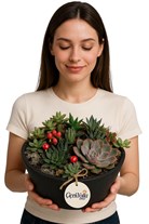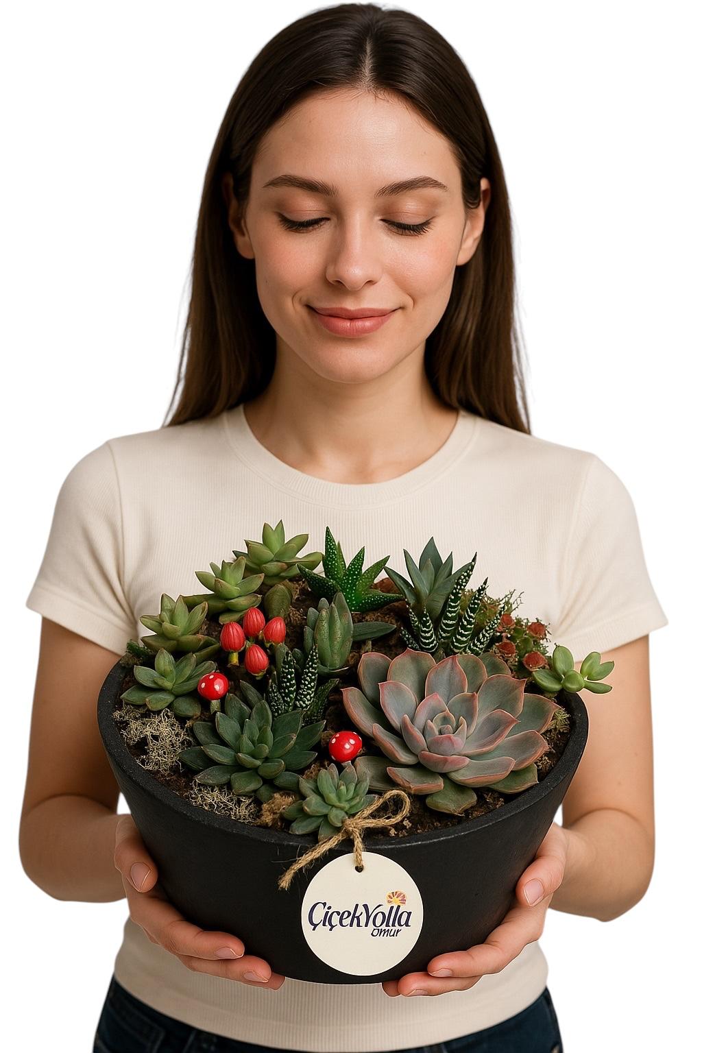 Moona Sukulent Dizayn Dekoratif beton saksıda 2 adet echeveria 2 adet alo türü zebra sukulent 1 adet buxusve kurutulmuş stabil kuru çicek kullanılmıştır. Ürün bakım bilgileri haftada bir çay kaşı kadar sulamanız yeterli olacaktır. Yaklaşık boyutlar ; Saksı çapı 25cm, bitki dahil yükseklik 15-20cm'dir Not Moona Sukulent Dizayn sukulentler mevsimsel olarak değişiklik Gösterebilir