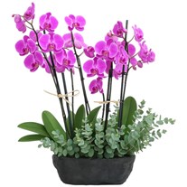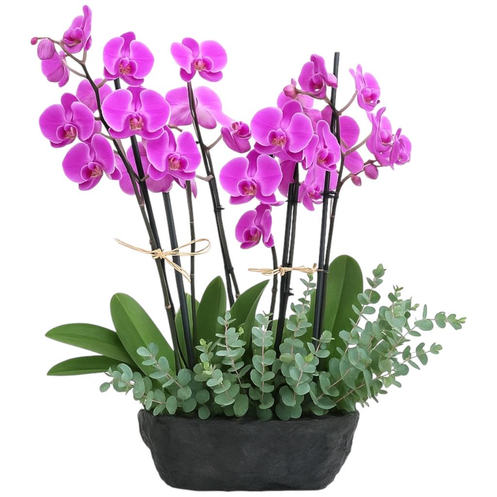 Özel Saksı içerisinde 8 dal mor renk orkide, kuru dallar ve okaliptus yaprağı bulunmaktadır. Orkide Aydınlık bir ortamda bulunmalıdır. Klimalı yerlerden uzak durmalıdır. Ev ve İş ortamınıza doğallık ve şıklık katacak bir tasarımdır. Orkide yaklaşık 60cm'dir. saksı uzunluğu 25x10 cm'dir.