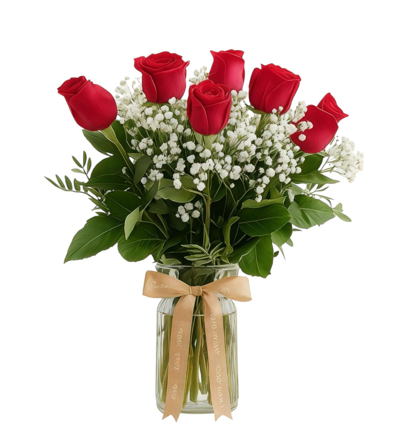 Aşkın en klasik ve en etkileyici hali… “Aşkın Simgesi” aranjmanı, 6 adet canlı kırmızı gül ile beyaz cipso çiçeklerinin zarif birleşiminden oluşur. Cam silindirik vazo içinde sade ama şık bir şekilde sunulan bu tasarım, altın tonlarında “çiçekyolla” logolu saten kurdeleyle tamamlanmıştır. Romantik duyguları ifade etmenin en yalın ve etkileyici yoludur.