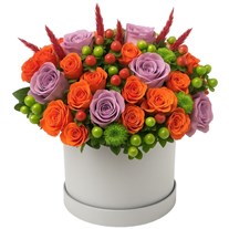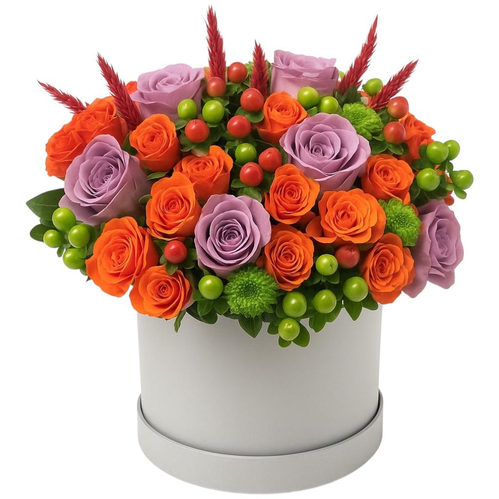 Ürün Yüksekliği 25cm Genişlik 25cm Bugün onun için rengarenk bir sürpriz yapmaya ne dersiniz? Özel kutu içerisinde doğanın en güzel renklerinin sergilendiği Premium Kutuda Renk Cümbüşü Şahane Gül Bahçesi içerisinde , beyaz ve lila güller; pembe ve turuncu çardak güller ile yeşil biçmeler yer alıyor. Gününe doğanın enerjisini katmak istediğiniz sevdiklerinize, tüm gün gülümseyerek dolaşmalarını sağlayacak bu aranjmanı hediye edebilirsiniz. Not Kutu Renkleri Stok Durumuna Göre Siyah ,Kırmızı ,Pembe farklılık gösterebilir..