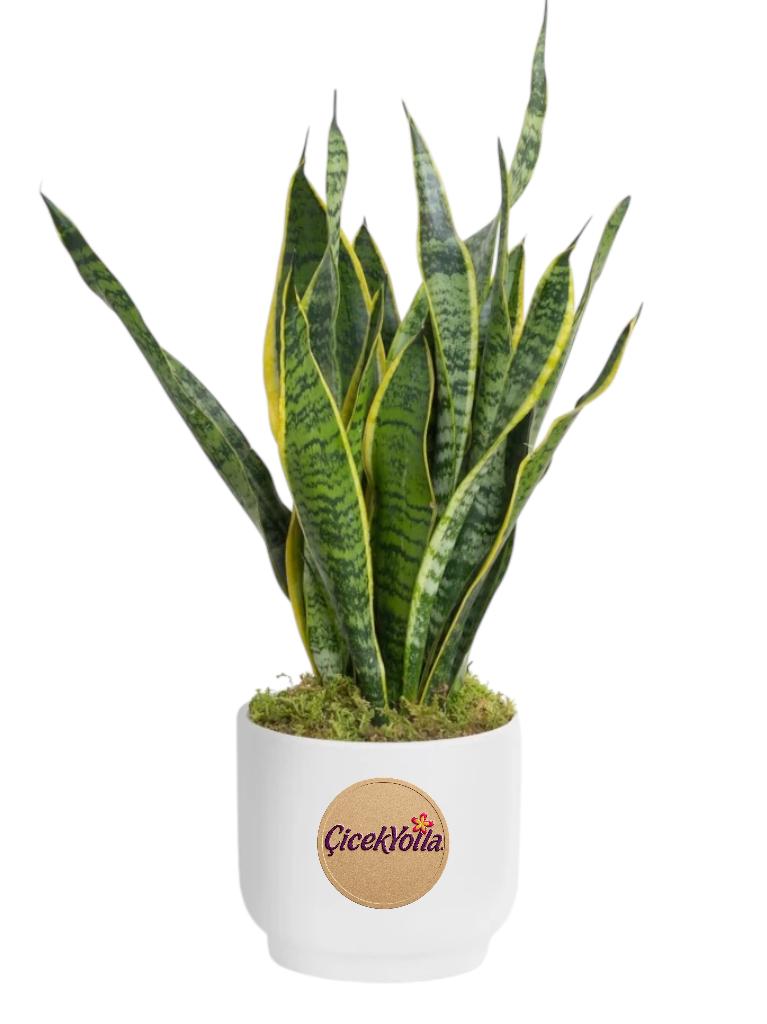 Dayanıklılığı ve uzun ömürlü yapısıyla bilinen Paşa Kılıcı (Sansevieria), hem şık bir dekoratif görünüm hem de hava temizleyici özelliği ile en çok tercih edilen iç mekan bitkilerindendir. Bakımı kolay olan bu bitki, düşük ışıkta bile yaşayabilir ve fazla su istemez. Modern beyaz saksısıyla hem evinize hem de ofisinize zarif bir dokunuş katar. Uzun ömürlü olması sebebiyle sevdiklerinize kalıcı bir hediye alternatifi sunar.