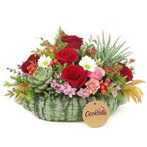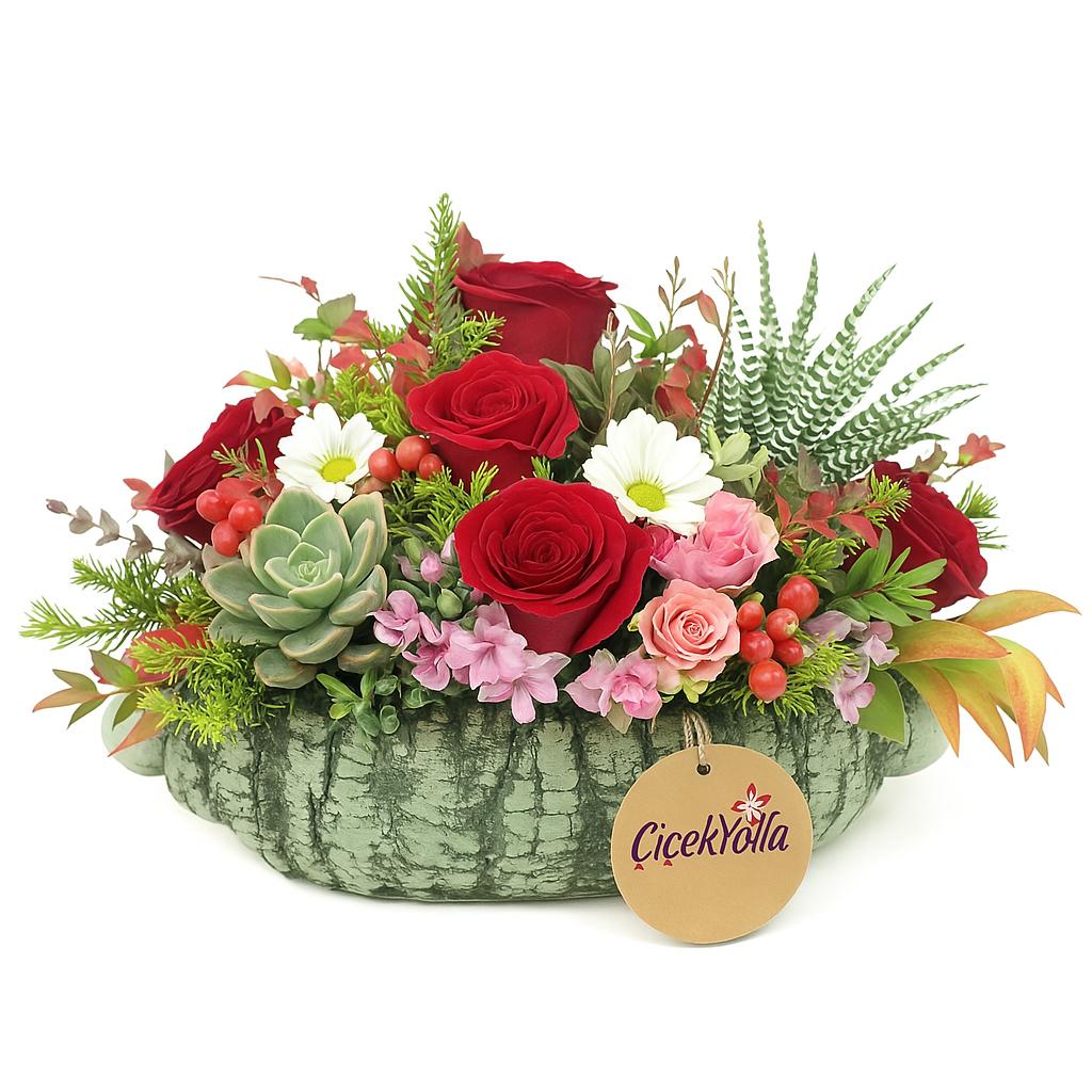 Pure Naturalıty Zarif çiçeklerle hazırlanan bu şık aranjman; doğum günü, ilk iş günü, Sevgililer Günü, yıl dönümü gibi özel günlere çok yakışır. Bu aranjmanı sevdiklerinize hediye edebileceğiniz gibi, evinizi ya da ofisinizi dekore etmek için de tercih edebilirsiniz. ürün yüksekligi 15cm 20cm arasıdır kırmızı gül sukulent yeşil biçme pembe biçme ve nandina yapraklarıyla hazırladık