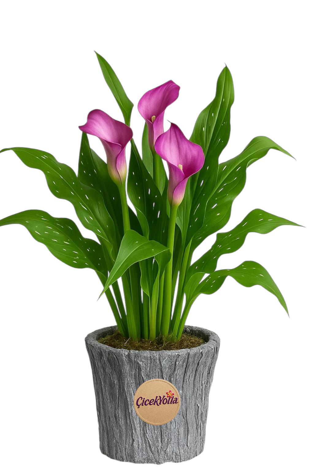 Doğal gri saksı içerisinde sunulan bu Calathea Freddie, yapraklarındaki belirgin çizgileri ve koyu-yeşil desen geçişleriyle dikkat çeker. Yaklaşık 45-50 cm yüksekliğe sahip olan bu bitki, özellikle az ışıklı iç mekanlarda yaşamayı sever. Yapraklarının gündüz açılıp gece kapanması gibi harika bir özelliği vardır. Saksı yüzeyinde yosun doku ve ÇiçekYolla doğal ipli sticker etiketi ile özel konseptte hazırlanmıştır.