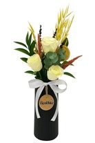 Siyah Vazoda Krem Gül ve Kurutulmuş Detaylı Aranjman