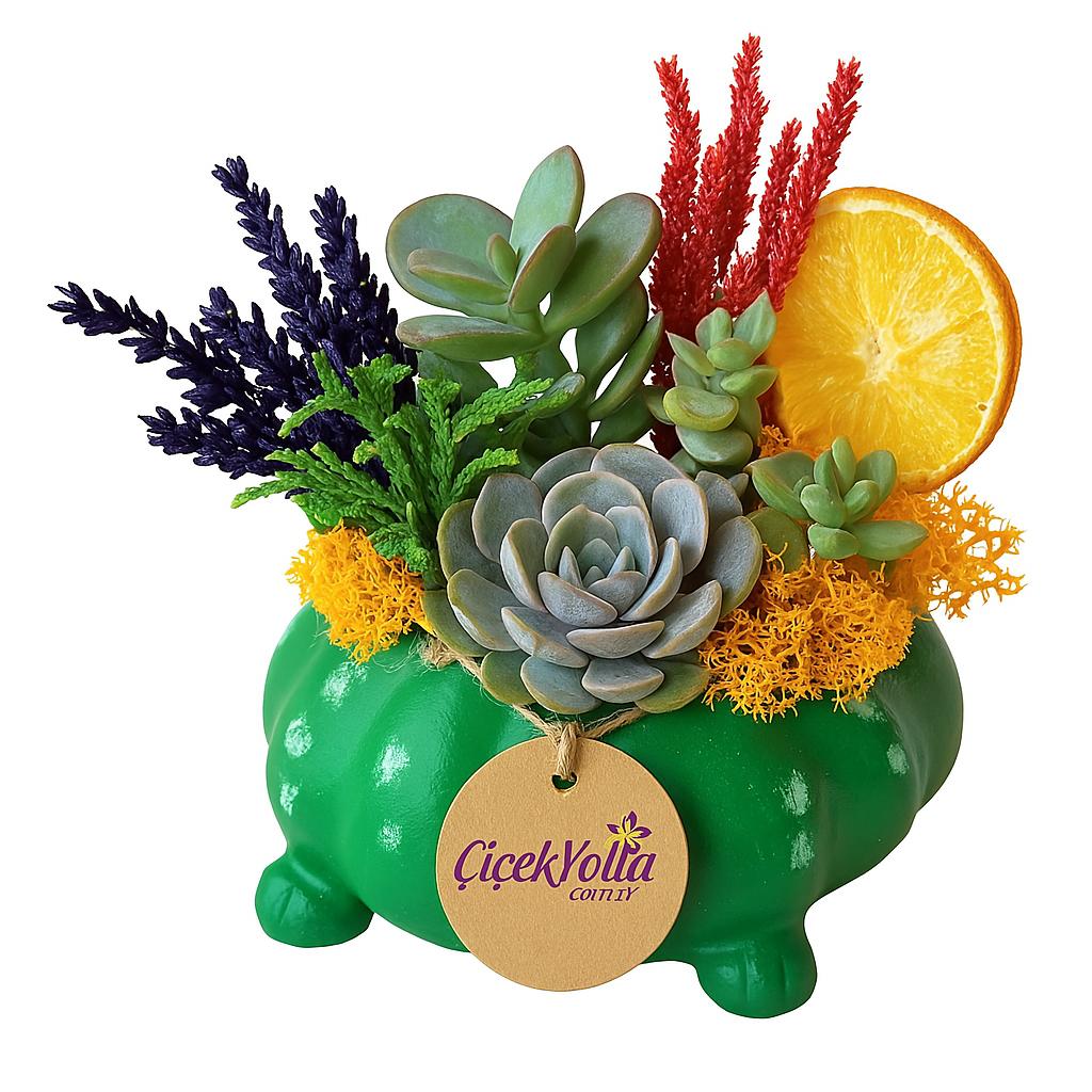 Sukulent ve kuru çiçeklerin buluştuğu eşsiz aranjman, modern ve doğal bir görünüm sunuyor. Özel tasarım seramik saksı içinde hazırlanan bu doğa temalı aranjman, online çiçek siparişi ile Çiçek Yolla güvencesiyle kapınıza geliyor. Sevgiliye hediye, ofis dekorasyonu ve doğum günü çiçeği olarak mükemmel bir tercih! İstanbul ve Türkiye geneline aynı gün teslimat avantajıyla hemen sipariş verin! 🚀💐