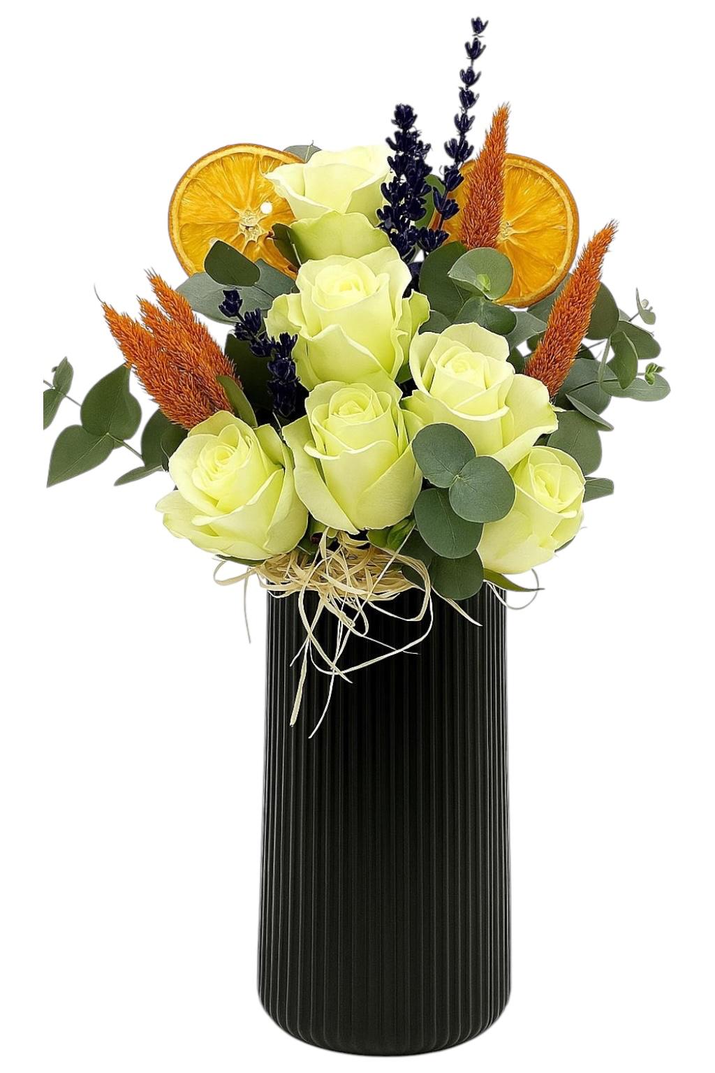Hayatınızı güzelleştiren ve daima sizin yanınızda olan sevdiklerinize güzel bir sürpriz yapmaya ne dersiniz? Siyah Çizgili Vazoda Cipso Süslemeli Beyaz Güller, sevdiklerinizi mutlu etmeniz ve içten duygularınızı anlatmanız için özel olarak tasarlandı. Şık vazoda sunulan beyaz güller, en masum hislerin ve temiz hayallerin simgesidir. Bu özel aranjman sayesinde sevdiklerinize olan hislerinizi anlatabilir, günlerine kocaman gülümsemeler ekleyebilirsiniz. Yeni bir işe başlayan, yeni bir ev tutan veya kariyerinde özel bir an yaşayan sevdiklerinize hediye edebileceğiniz bu özel aranjmanı, sıradan bir günü özelleştirmek veya Sevgililer Günü, Anneler Günü, doğum günü gibi özel günleri unutulmaz kılmak adına sipariş edebilirsiniz. Siparişiniz sonrasında çıkacak “Not oluşturma” sayfasında birkaç cümlelik not oluşturarak hediyenizi daha anlamlı bir hale getirmeyi unutmayın.